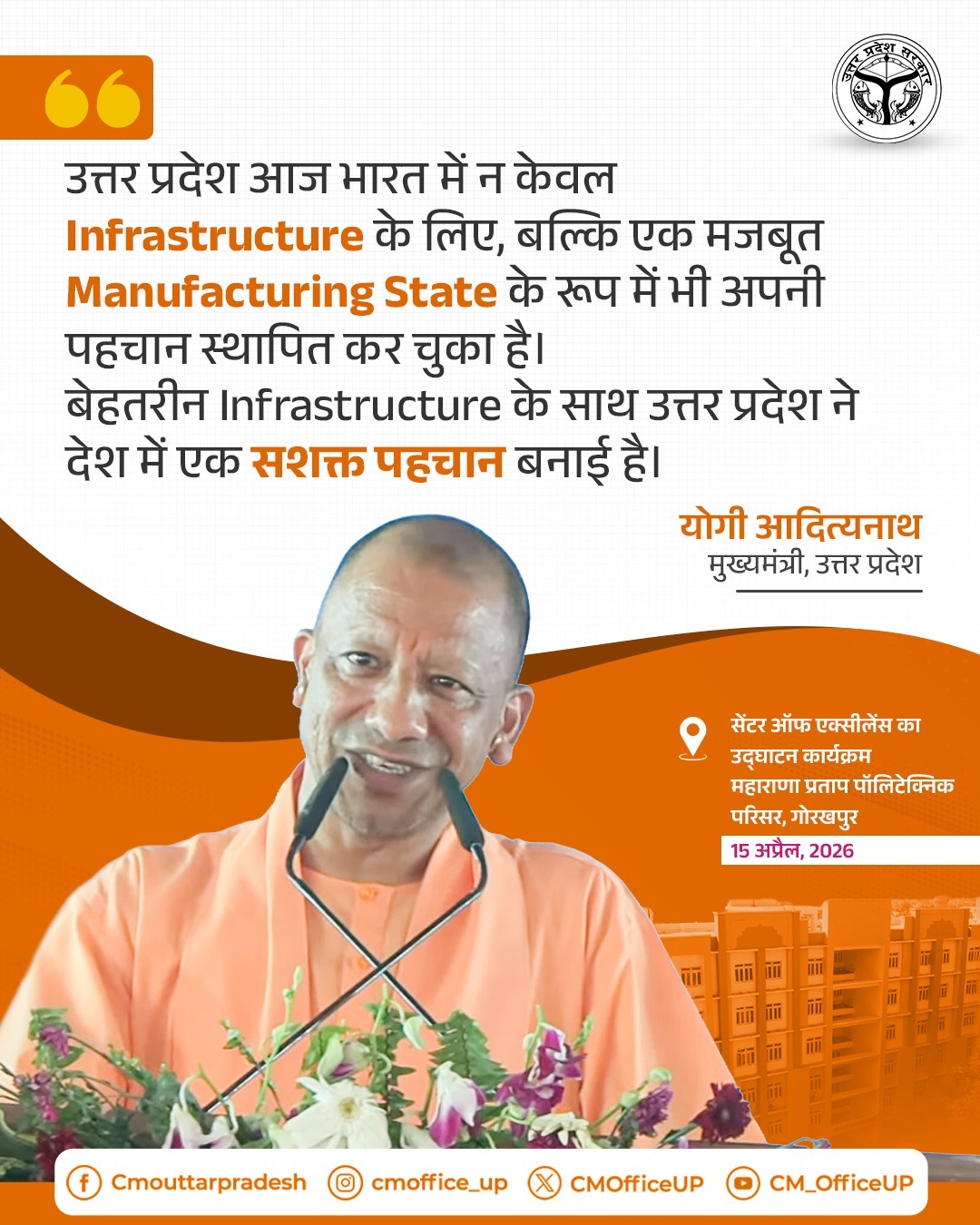 उत्तर प्रदेश आज भारत में न केवल Infrastructure के लिए, बल्कि एक मजबूत Manufacturing State के रूप में भी अपनी पहचान स्थापित कर चुका है।